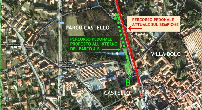“La mia proposta molto concreta per una Somma un pochino più vivibile: utilizzare la stradina del parco del castello che costeggia il sempione per aprire una nuova via pedonale verso il centro. Basterebbe aprire il cancello (che già esiste) e bloccare l’accesso al parco con una rete e… magicamente non vedremmo più sparuti gruppi di turisti aggirarsi per la città alla ricerca di strade pedonali, nè mamme con passeggini costrette a lunghe deviazioni per evitare la strettoria del Sempione con le macchine”.